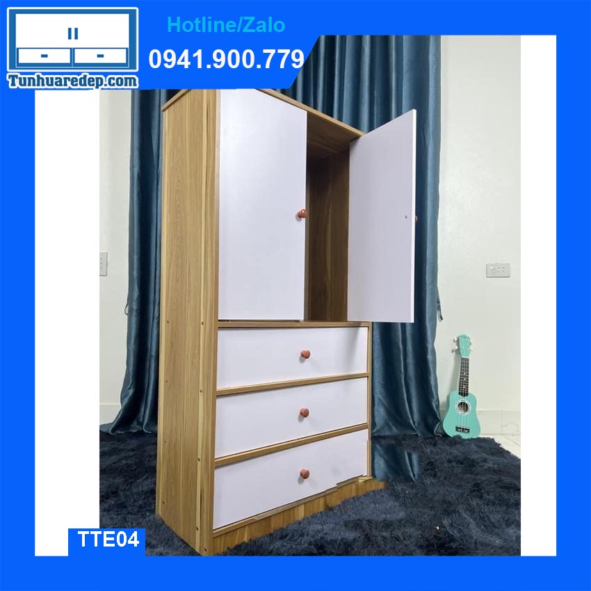 Sản phẩm Tủ nhựa quần áo trẻ em 2 cánh 3 ngăn kéo to TTE04 được bảo hành 5 năm tại Tủ Nhựa Rẻ Đẹp. Để đặt mua vui lòng inbox fanpage Tủ Nhựa Rẻ Đẹp hoặc hotline 094.1900.779 để được trợ giúp.